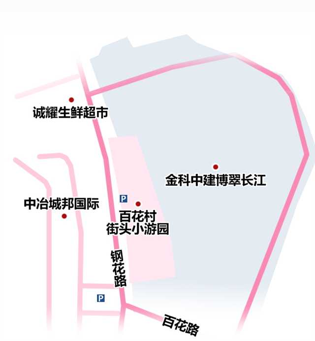 百花村街頭小游園位于鋼花路東側(cè),金科博翠長江小區(qū)西側(cè),面積約3000平方米。記者注意到,這是一個(gè)帶狀的口袋公園,小而精致。公園內(nèi)植被郁郁蔥蔥,健身步道柔軟舒適,休閑座椅、兒童游樂設(shè)施也一應(yīng)俱全。