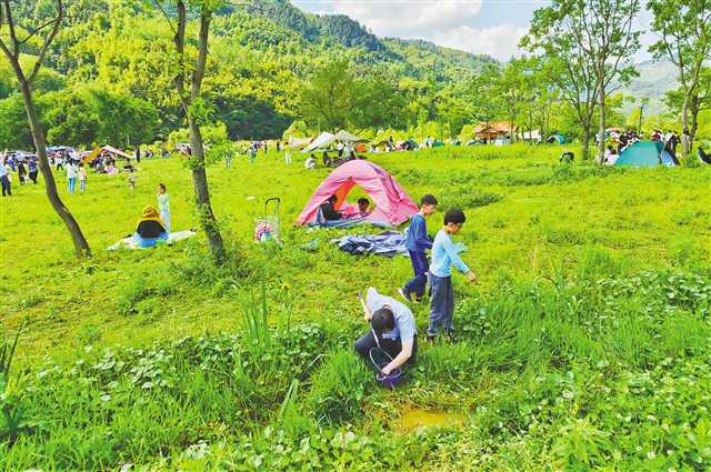 5月2日,萬(wàn)盛經(jīng)開區(qū)黑山鎮(zhèn)魚子村,市民在山野里露營(yíng)游玩。今年“五一”假期,露營(yíng)休閑成為不少市民的選項(xiàng)。記者 崔力 攝/視覺(jué)重慶