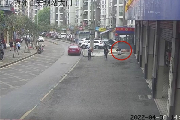 小女孩放下紙箱就離開。萬州區(qū)消防救援支隊供圖