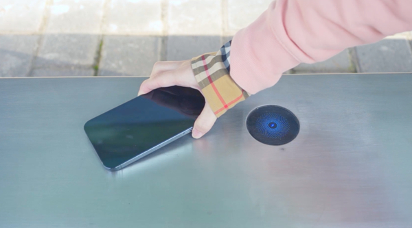 站臺(tái)座位設(shè)置無(wú)線充電接口。重慶經(jīng)開(kāi)區(qū)供圖