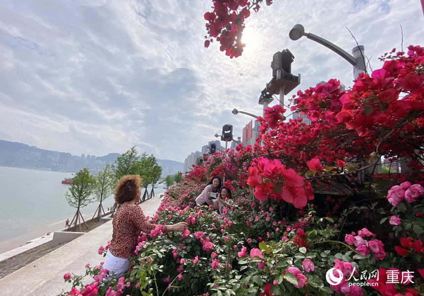 萬州濱江環(huán)湖區(qū)盛開的三角梅吸引不少市民拍照留念。人民網(wǎng) 劉政寧攝