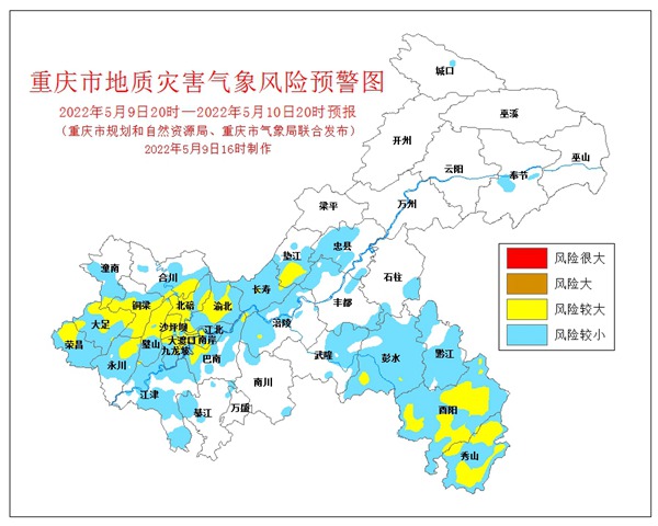 5月9日16時,重慶市規(guī)劃和自然資源局、重慶市氣象局聯(lián)合發(fā)布全市地質(zhì)災(zāi)害氣象風(fēng)險預(yù)警。