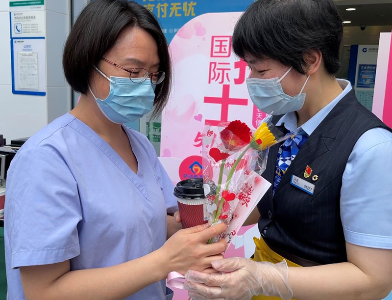 作為一家位于醫(yī)院里的銀行,一直以來,建行醫(yī)學院支行堅持以客戶為中心,用溫馨暖心的金融服務為醫(yī)護人員送上貼心的關(guān)愛。支行員工穿梭于院內(nèi)各個科室普及、宣講金融知識,用金融服務之手為醫(yī)生護士們“問診把脈”,在婦女節(jié)、護士節(jié)、醫(yī)師節(jié)等送上鮮花、盆栽等祝福;努力搭建醫(yī)院周邊的金融生態(tài),上門為醫(yī)護人員介紹“建行生活”,讓其享受優(yōu)惠快捷的生活服務;不斷拓展“勞動者港灣”服務外延,與醫(yī)護人員攜手,方便病患及家屬歇腳充電、熱飯喝水。