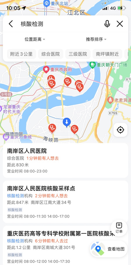 一鍵導(dǎo)航,重慶推便民核酸檢測查詢服務(wù)