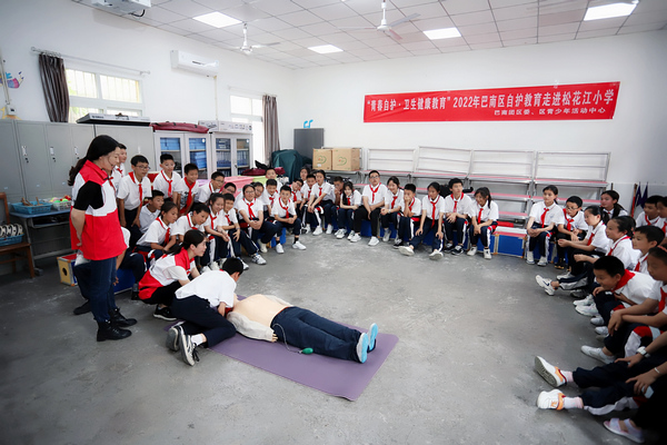 在衛(wèi)生健康教育課堂上,重慶市護士學校周紅老師給孩子們普及青春期健康知識、傳授海姆立克急救法和氣道異物卡喉等急救技能。經(jīng)過模擬體驗,孩子們儼然成了一個個急救小能手,紛紛表示要當好“小老師”,教會身邊的人急救知識,并在遇到緊急情況時敢于出手相救。(陳夢嬌)