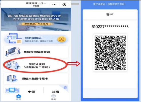 申領、查詢“便民渝康碼”示意圖。重慶市大數(shù)據(jù)管理局供圖