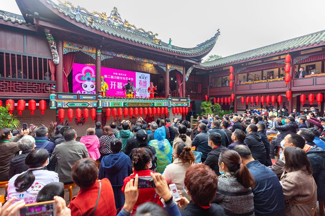第二屆川劇文化藝術節(jié),游客在雍溪古鎮(zhèn)古戲樓觀賞川劇。大足區(qū)委宣傳部供圖