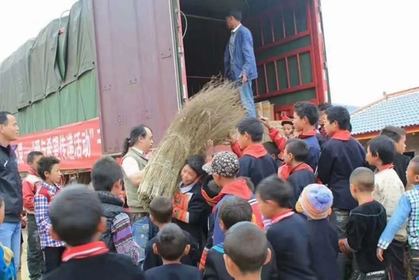啊謀運(yùn)送物資給大涼山千哈博愛小學(xué)的孩子們。(資料圖)受訪者供圖