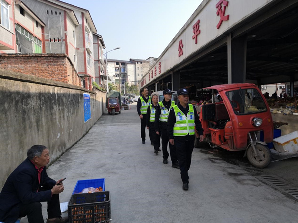 有關(guān)力量開(kāi)展治安巡防。大盛鎮(zhèn)供圖