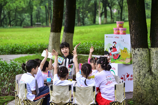 觀鳥結(jié)束后,“小候鳥”們參與了一場(chǎng)草坪讀書會(huì)。重慶肯德基供圖