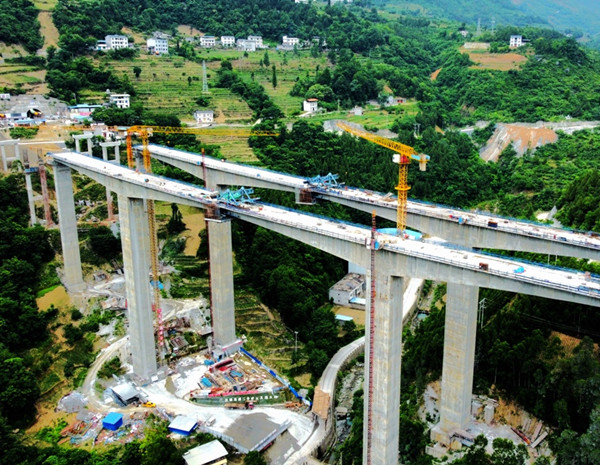 5月31日,巫(溪)鎮(zhèn)(坪)高速三叉溪大橋右幅中跨130米連續(xù)剛構順利合龍,這也是巫鎮(zhèn)高速首座合龍的連續(xù)剛構現(xiàn)澆橋梁。