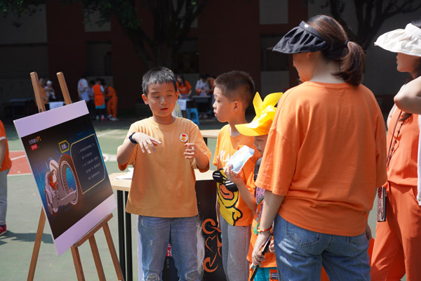 “小小設(shè)計師”正在認(rèn)真講解自己的設(shè)計理念。星光學(xué)校供圖