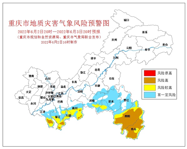 6月2日16時(shí),重慶市規(guī)劃和自然資源局、重慶市氣象局聯(lián)合發(fā)布全市地質(zhì)災(zāi)害氣象風(fēng)險(xiǎn)預(yù)警。