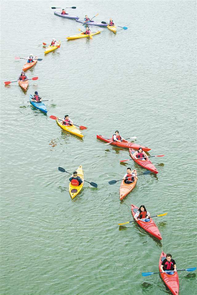 6月3日,游客們?cè)谀洗▍^(qū)黎香湖國(guó)家濕地公園泛舟放飛心情,樂享假日。特約攝影 瞿明斌/視覺重慶