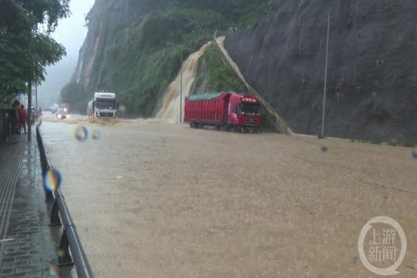 由于涪陵區(qū)多處出現(xiàn)短時強降雨天氣,城區(qū)降雨量56.2毫米,造成位于319國道與濱江大道交叉口西南方向450m處的一段約200米長的路段嚴重積水,阻礙了正常交通。積水路段,還有車輛被困。