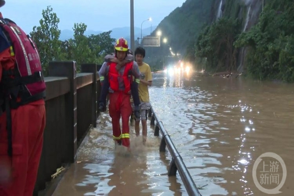 暴雨致小河瞬間漲水 涪陵消防救出4名被困人員