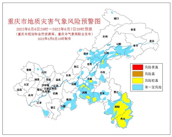 6月6日16時(shí),重慶市規(guī)劃和自然資源局、重慶市氣象局聯(lián)合發(fā)布全市地質(zhì)災(zāi)害氣象風(fēng)險(xiǎn)預(yù)警。