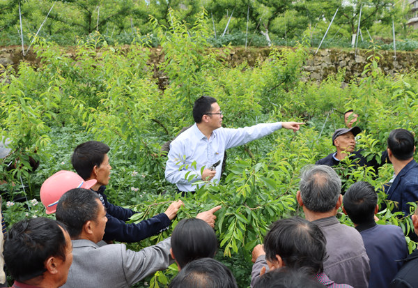 農(nóng)技專家現(xiàn)場指導(dǎo)為果農(nóng)管護教學(xué) 。巫溪縣委宣傳部供圖