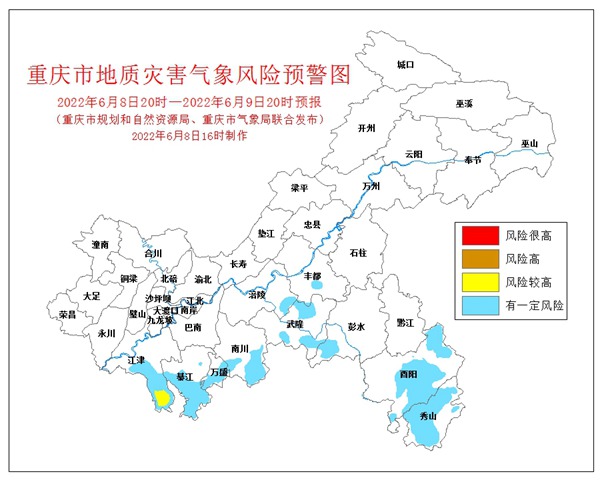 6月8日16時,重慶市規(guī)劃和自然資源局、重慶市氣象局聯(lián)合發(fā)布全市地質(zhì)災(zāi)害氣象風(fēng)險預(yù)警。