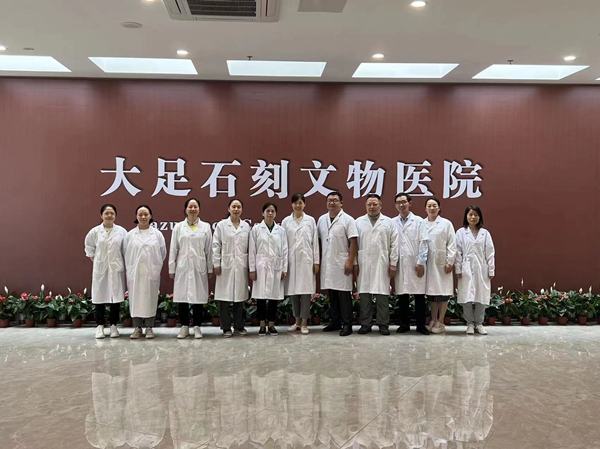 大足石刻文物醫(yī)院內(nèi)設(shè)文物保護(hù)科技實(shí)驗(yàn)室、文物保護(hù)修復(fù)室、大足石刻監(jiān)測(cè)預(yù)警中心、保護(hù)與修復(fù)成果展示室等四部分。它在傳承文物修復(fù)技藝傳統(tǒng)的基礎(chǔ)上,還融入了先進(jìn)的現(xiàn)代科技,各種文物“診療”設(shè)備應(yīng)有盡有;疾∥奈锝(jīng)過(guò)科學(xué)“體檢”后,病害分析更加準(zhǔn)確,治療過(guò)程更加科學(xué)。