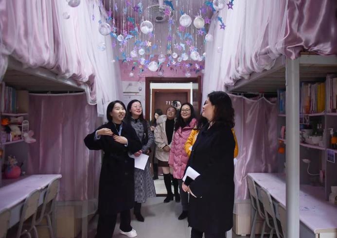 評(píng)審專家深入學(xué)生寢室對(duì)文明寢室進(jìn)行評(píng)審。重慶工程職院供圖