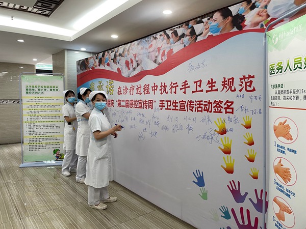 “感控踐行,人人有責”,為進一步加強感染預防與控制工作,提高工作人員感控意識,6月13日上午,江北區(qū)中醫(yī)院第二屆感控宣傳周手衛(wèi)生宣傳活動正式啟動,醫(yī)院各科室醫(yī)務人員紛紛在宣傳展示墻上簽上了自己的姓名,承諾自己在診療過程中嚴格執(zhí)行手衛(wèi)生規(guī)范,守住感控管理的底線,以更加優(yōu)質(zhì)的醫(yī)療服務,護佑人民群眾的生命健康。