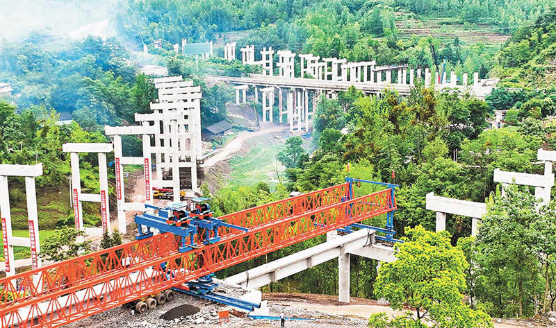 6月12日,渝湘高速擴(kuò)能項(xiàng)目酉彭段銅西互通,部分橋墩開始架設(shè)預(yù)制梁。