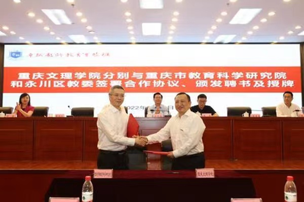 重慶文理學(xué)院與重慶市教育科學(xué)研究院簽訂“卓越教師”聯(lián)合培養(yǎng)合作協(xié)議。重慶文理學(xué)院供圖