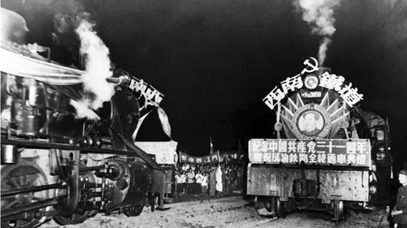 1952年,新中國修建的第一條鐵路成渝鐵路建成通車。
