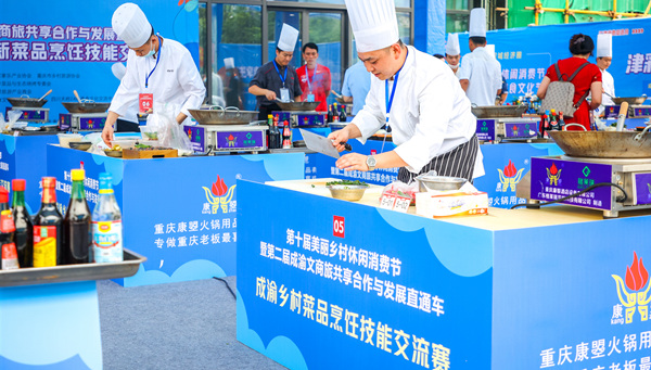 來自成渝兩地的廚師在“成渝鄉(xiāng)村菜品烹飪技能交流賽”展示廚藝。主辦方供圖