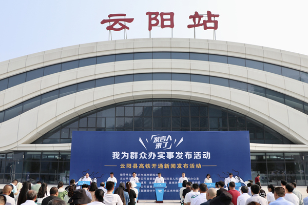 “我們將牢牢抓住‘高鐵時(shí)代’帶來(lái)的機(jī)遇,更好推動(dòng)云陽(yáng)融入國(guó)家發(fā)展全局,加快‘讓世界知道云陽(yáng),讓云陽(yáng)走向世界’。”6月17日上午,“發(fā)言人來(lái)了-我為群眾辦實(shí)事”云陽(yáng)縣高鐵開通新聞發(fā)布活動(dòng)在即將投用的鄭渝高鐵云陽(yáng)站站前廣場(chǎng)上舉行。藍(lán)天之下、蓬溪河畔,白色流線型站廳顯得格外壯觀,更好地闡述了“耕讀云水間,梯城展新顏!