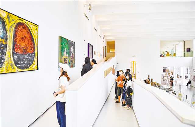 6月25日,“開(kāi)放的六月”展覽最后一天,重慶日?qǐng)?bào)記者在虎溪公社展場(chǎng)看到,仍有大量市民排隊(duì)預(yù)約觀展。展廳內(nèi),觀展者三五成群,圍著畫(huà)作品頭論足。