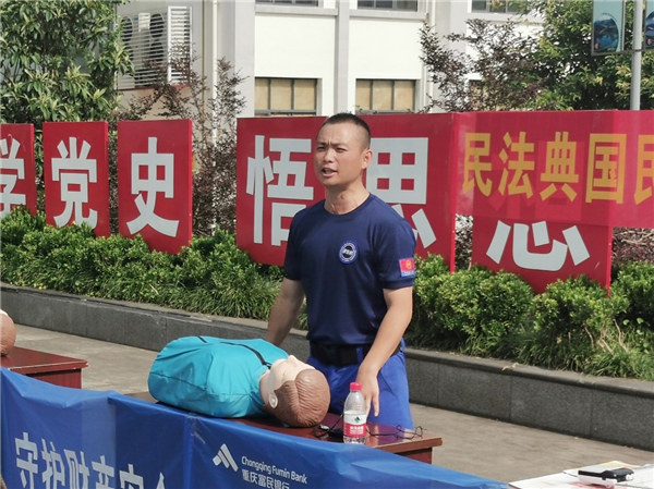 活動現(xiàn)場進行急救知識講解。重慶坤源衡泰律師事務(wù)所供圖