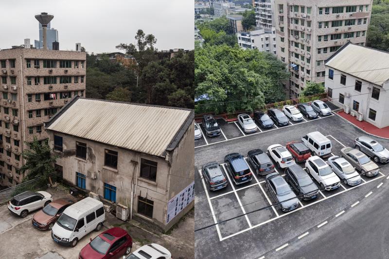 醫(yī)學院路小區(qū)停車場整治前后。受訪單位供圖