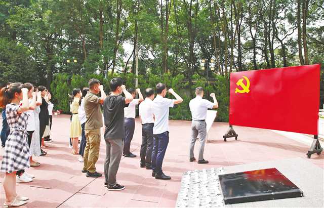 6月28日,歌樂山烈士陵園,黨員重溫入黨誓詞。通訊員 趙杰昌 攝/視覺重慶