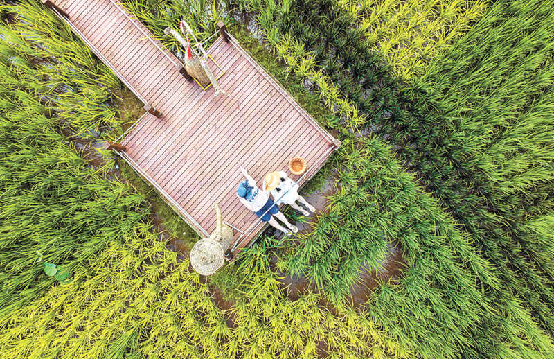 7月3日,在北碚區(qū)柳蔭鎮(zhèn)東升村,綠油油的稻田成為旅游景點(diǎn),不少游客到田間地頭拍照留念,感受田園風(fēng)光。