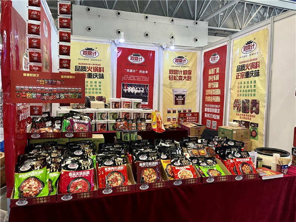 活動現(xiàn)場,不同品類的重慶本土農(nóng)產(chǎn)品香氣撲鼻,土蜂蜜、茶油、麻辣調(diào)味品、預制菜、本土腌臘制品等攤位讓到場的國內(nèi)外觀眾紛紛駐足、品嘗。