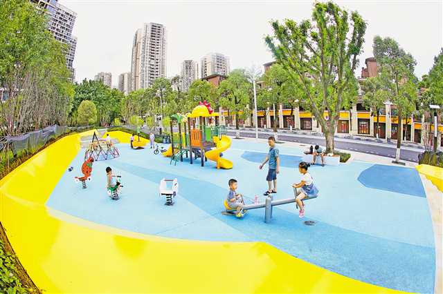 7月27日,南岸彈子石騰濱路,市民們正帶著孩子在騰濱口袋公園里玩耍,享受城市景觀建設(shè)帶來的幸福。