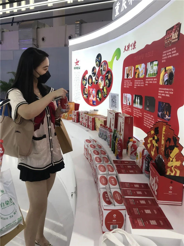 現(xiàn)場,天府可樂在重慶特色產(chǎn)品展區(qū)展出,獨(dú)特的清新草本味,充分展示了重慶本土特色飲品風(fēng)采。天府可樂作為“重慶老字號”品牌,不管從“內(nèi)在”草本精制還是“外在”包裝上,都極具巴渝文化特色。