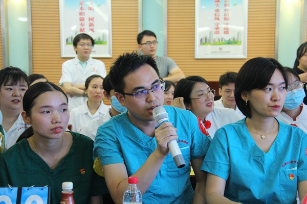 賽場(chǎng)上,10支參賽隊(duì)伍使出渾身解數(shù),踴躍答題?!安讲綖闋I(yíng)之爭(zhēng)分奪秒”環(huán)節(jié)精彩不斷,一名隊(duì)員轉(zhuǎn)呼啦圈,另一名隊(duì)員回答問(wèn)題直到呼啦圈掉落,在場(chǎng)觀(guān)賽人員的心都緊跟著砰砰砰跳個(gè)不停,大家直呼“太刺激”了。獨(dú)具特色的集知識(shí)與趣味性一體的知識(shí)競(jìng)賽,讓日常的醫(yī)療制度和規(guī)章變得妙趣橫生。