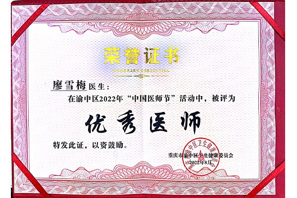 重慶銅雀臺(tái)主任廖雪梅獲得渝中區(qū)2022年度優(yōu)秀醫(yī)師