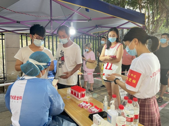 為了減少業(yè)主排隊(duì)時(shí)間,金科服務(wù)工作人員提前對(duì)小區(qū)樓棟進(jìn)行了劃分,并通過一對(duì)一和朋友圈的形式,通知到每一位業(yè)主,保證業(yè)主以最快的速度完成采樣。