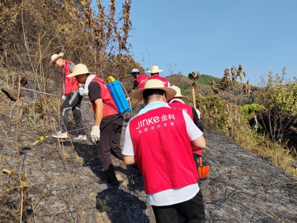 金科服務(wù)工作人員馳援山火。金科服務(wù)供圖