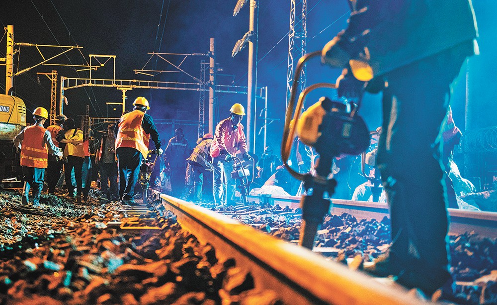 9月3日凌晨,渝利鐵路石柱沙子站增設(shè)客運(yùn)設(shè)施項(xiàng)目現(xiàn)場(chǎng),中鐵一局的工人正在更換鐵軌和道岔。當(dāng)日,該項(xiàng)目完成了在既有高鐵內(nèi)鋪設(shè)6組道岔的施工任務(wù),為沙子站開通客運(yùn)業(yè)務(wù)打下了堅(jiān)實(shí)基礎(chǔ)。