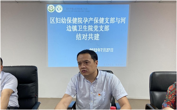 7月27日,在璧山區(qū)婦幼保健院孕產(chǎn)保健黨支部與河邊鎮(zhèn)衛(wèi)生院黨支部結對共建第二次聯(lián)席會議上,針對河邊鎮(zhèn)衛(wèi)生院黨支部提出的黨建工作難題,璧山區(qū)婦幼保健院黨委書記黃杰帶領孕產(chǎn)保健黨支部認真討論、結合實際提出解決方案,即通過“八大行動”切實提升河邊鎮(zhèn)黨支部黨建工作水平與能力,如加強黨建陣地建設、幫助建設浸口村衛(wèi)生室,促進村居婦女兒童健康相伴、結合“兩部一館”提升專業(yè)服務能力等。