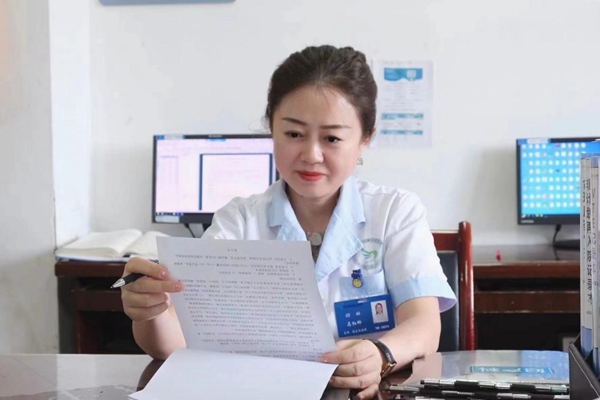 墊江縣人民醫(yī)院婦科主任馬紅柳在辦公室內(nèi)查看患者病例。墊江縣人民醫(yī)院供圖