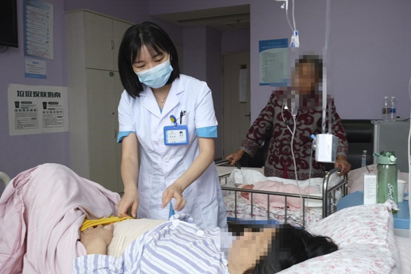 檢查產(chǎn)婦產(chǎn)后恢復(fù)狀態(tài)。墊江縣人民醫(yī)院供圖