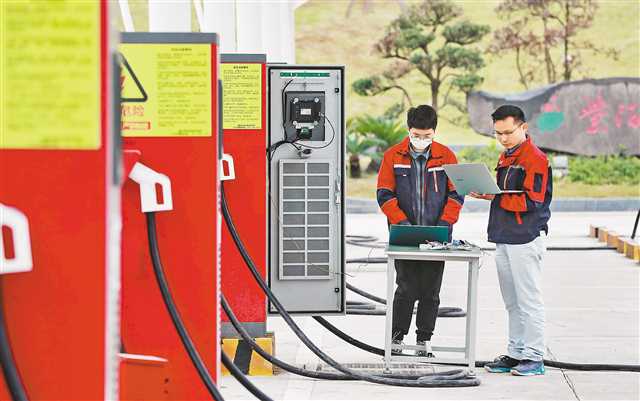 重慶高新院的科技人員在調(diào)試新型碳化硅半導(dǎo)體充電樁。(攝于二○二一年二月十八日)特約攝影 謝捷\視覺(jué)重慶