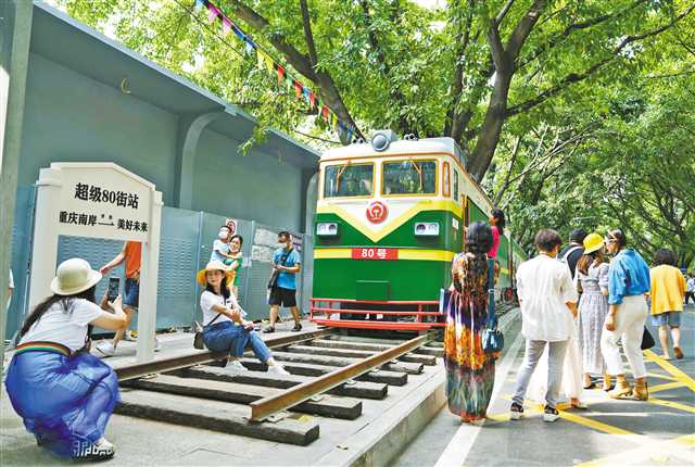 在重慶,像鶯花巷一樣具有“時尚范”的老舊小區(qū)還有不少。比如,南岸區(qū)南坪正街、新街片區(qū)“超級80街”,引入綠皮火車、收錄機、搪瓷杯、報刊畫報等上世紀80年代的元素,成為炙手可熱的文旅街區(qū),前來打卡的游客絡繹不絕。