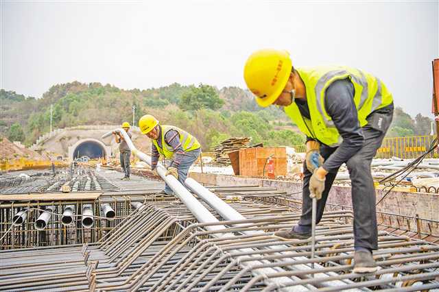 9月20日,位于巴南區(qū)惠民街道的渝湘高鐵重慶至黔江段石家沖四變二特大橋建設(shè)現(xiàn)場。